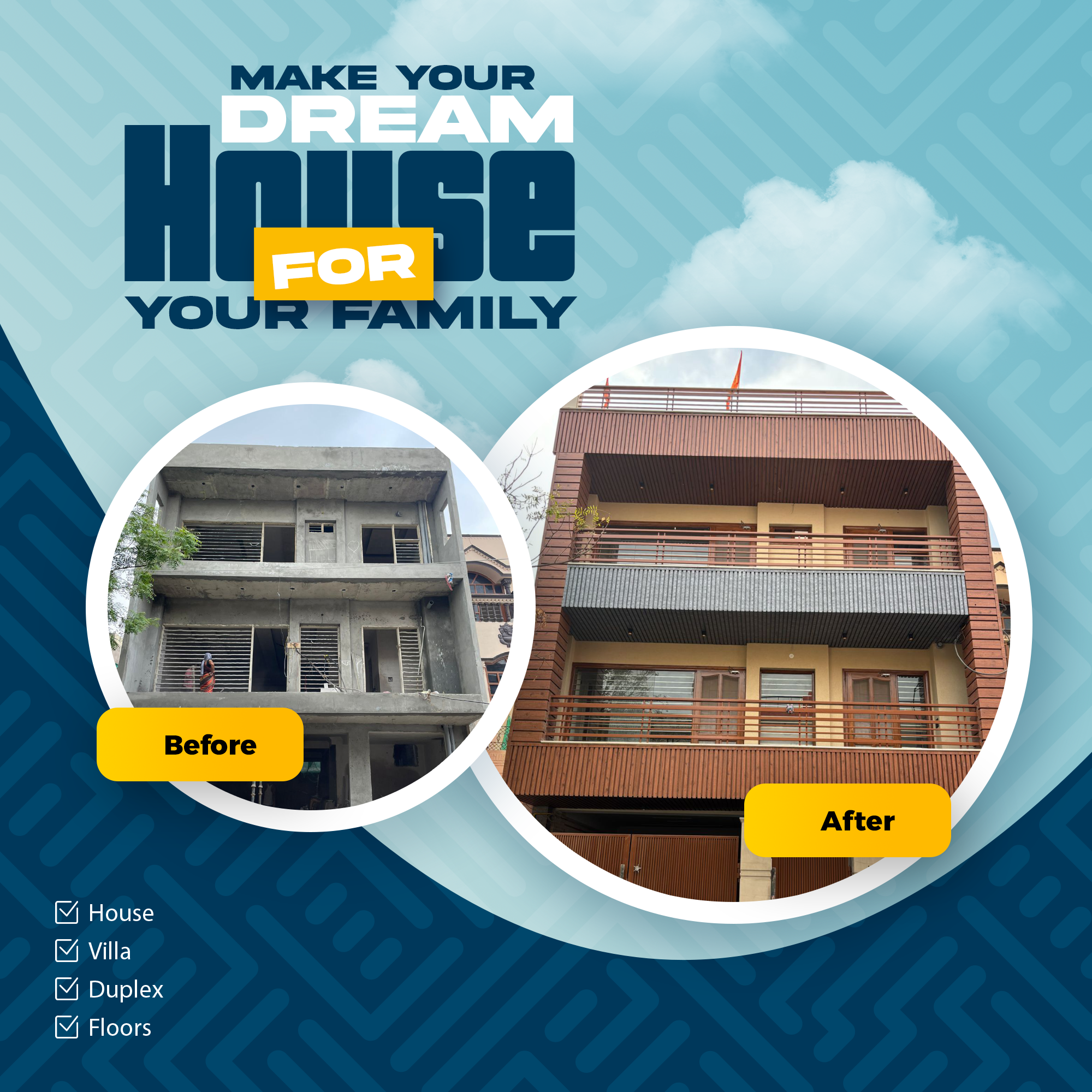 Make your dream home a reality with our expert home construction services. From design to finishing touches, we ensure every detail reflects your vision. Experience quality craftsmanship, innovative designs, and a commitment to excellence. Let's build a space where your dreams come to life, one brick at a time.